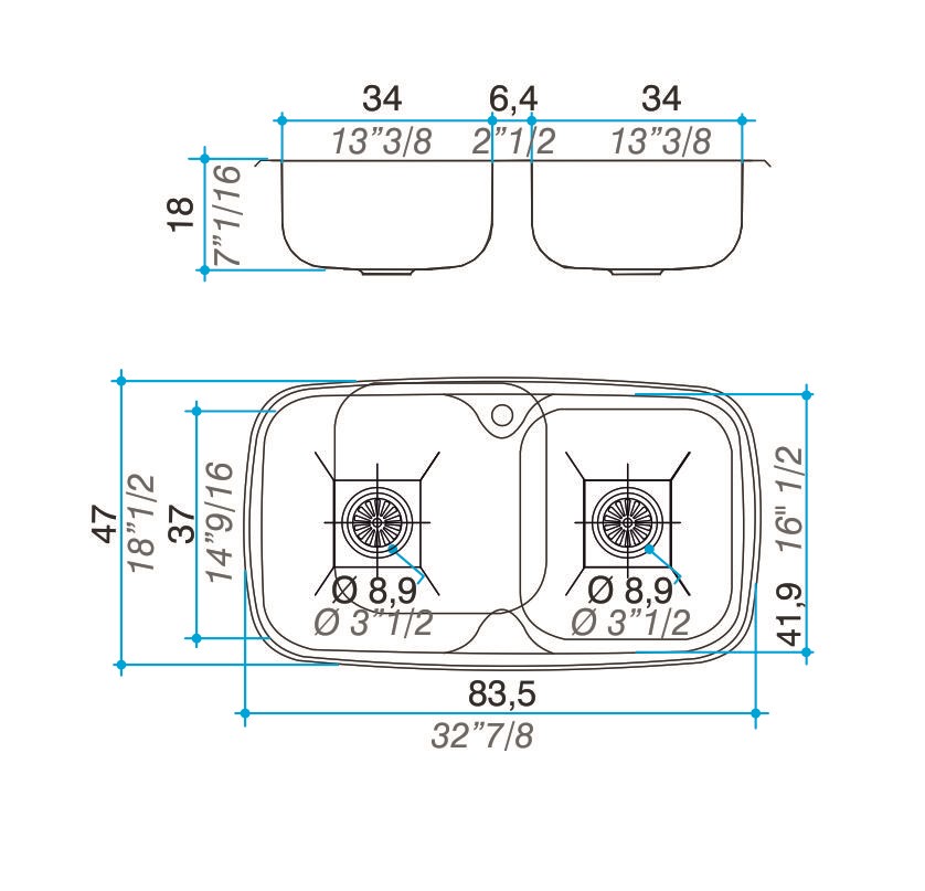 Zara D84 A HOME / PILETAS JOHNSON / ZARA D84 A Zara D84 A - Pileta Doble De aplicación superior con un borde decorativo de gran diseño.Admite su colocación inferior o soldada a una mesada de acero inoxidable. SOLICITAR COTIZACIÓN