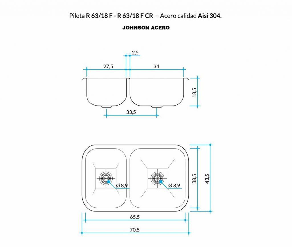 pileta R63 18 F johnson acero marmoleria portaro rosario medidas