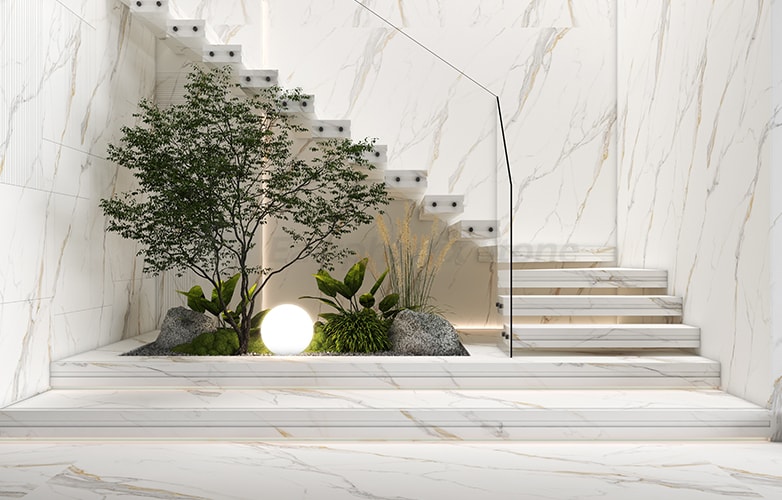 Aurora es un color inspirado en el Estatuario Italiano que cuenta con tecnología de veta pasante. Esto quiere decir que la veta continúa en el cuerpo del material.